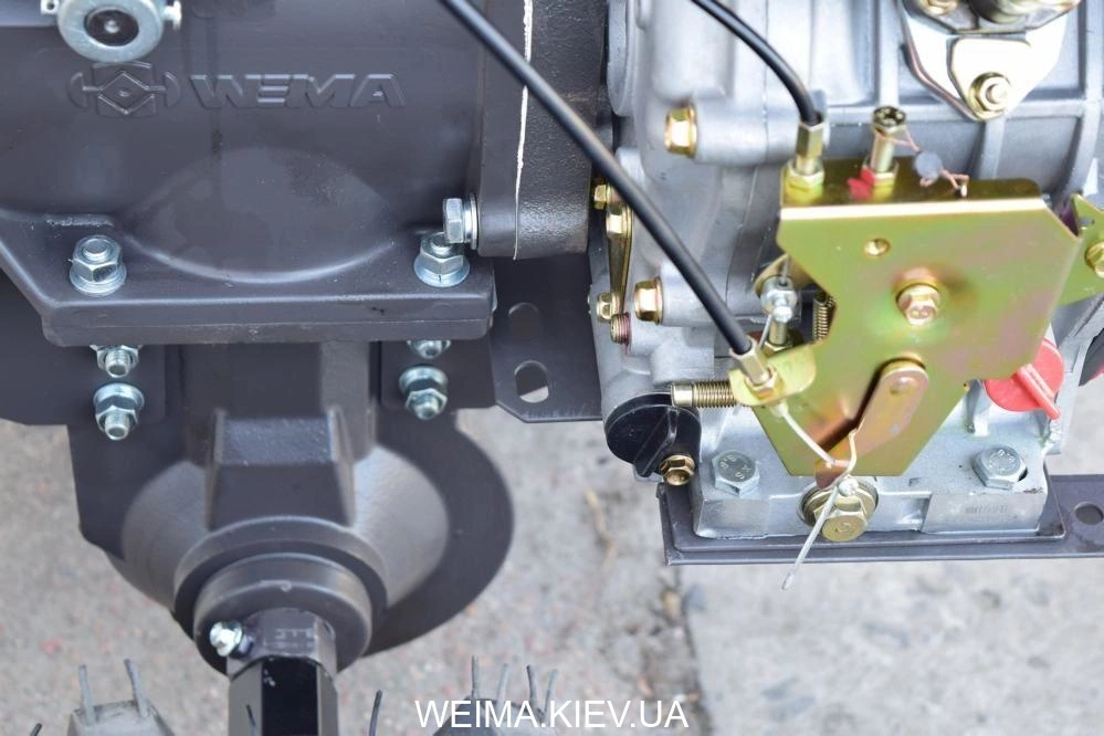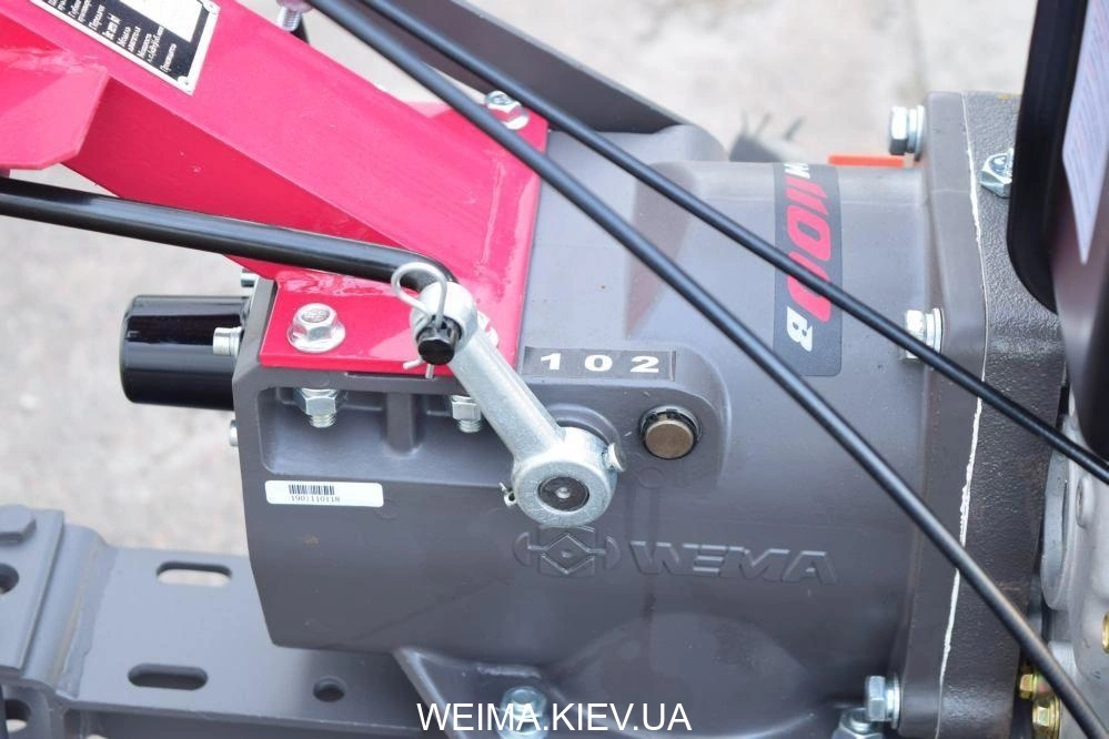 КПП мотоблока Weima (Вейма) WM1100B PRO имеет 2 скорости движения вперед и 1 скорость назад. ПВ результате исходя из вида работ, оператор определяет оптимальную скорость движения силового агрегата.